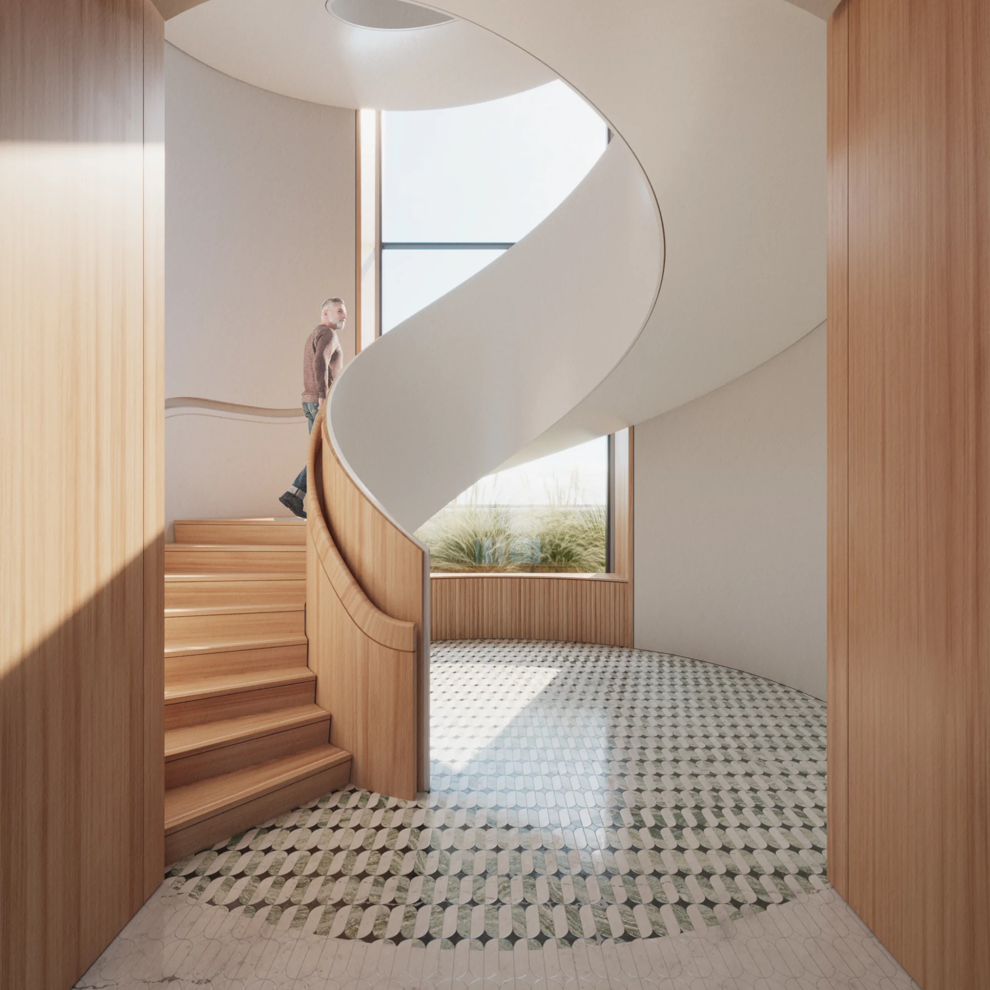 Internally the core is positioned centrally in the building, it features a central spiral staircase that celebrates the movement of occupants ascending up the building and provides views across Kensington. Flexible and efficient floor plans allow the building to adapt to changing future use and requirements beyond the building’s design life.